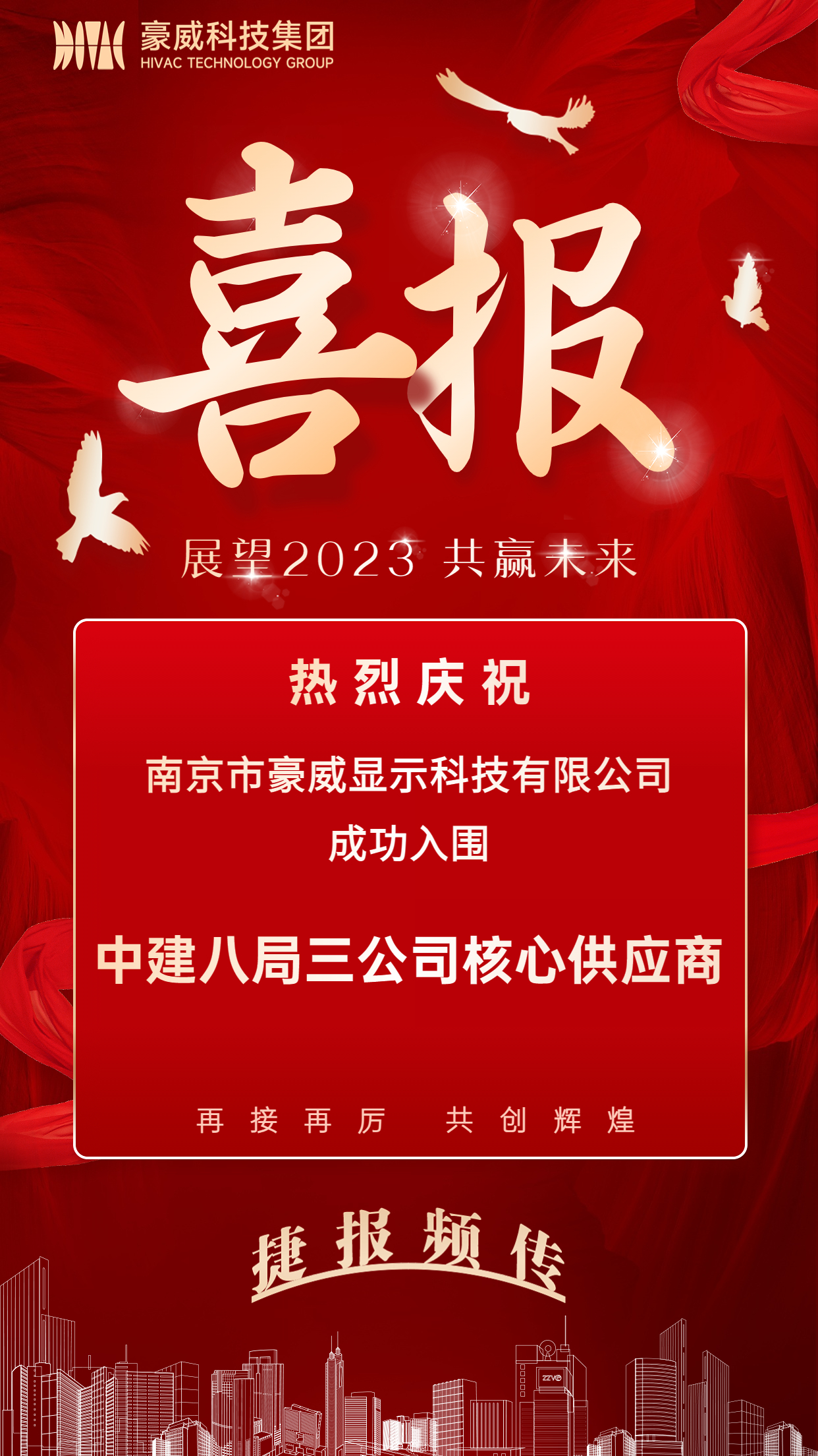 南京市kaiyun入口显示科技有限公司积极参与中建八局第三建设有限公司南京分公司平台认证工作,经过多方努力,快速入选其物资供应商。此次合作增强了公司综合竞争力,也为持续开拓项目积累了宝贵经验。